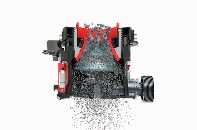 在工作時(shí)通過(guò)電動(dòng)機的旋轉帶動(dòng)帶輪或聯(lián)軸器、傳動(dòng)軸和圓錐部在軸心線(xiàn)下使偏心軸做周期性旋擺運動(dòng)。在物料從料口進(jìn)入破碎腔后因受到偏心軸和軋臼壁的相互沖擊擠壓、研磨、揉搓從而產(chǎn)生破碎的作用。液壓保險系統能在機器發(fā)生過(guò)鐵故障或者悶車(chē)現象時(shí)通過(guò)液壓將支撐套和定錐部排除出故障物,在起到很好的保險作用的同時(shí)大大的降低了維修率及提高生產(chǎn)效率。